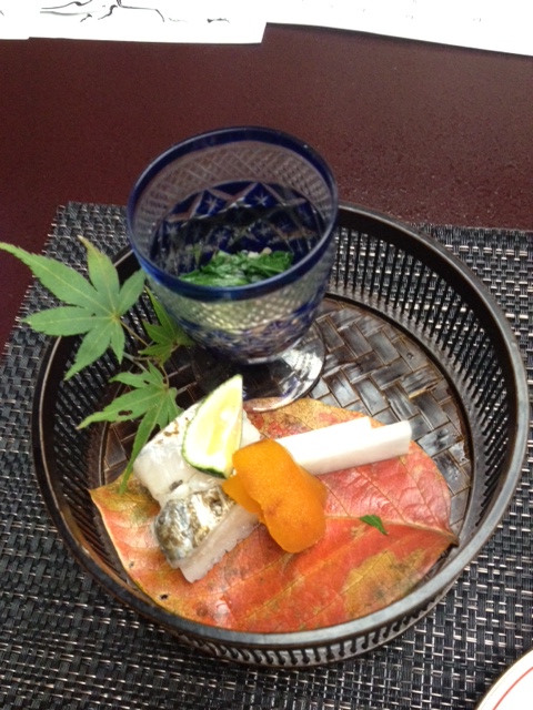 Savoury egg custard with octopus and ginko nuts and zest of Uzu (Japanese lime)